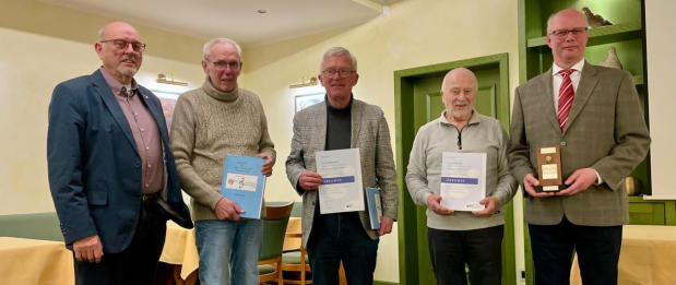 Ehrungen für langjähriges Singen durch den Ersten Vorsitzenden des MGV Harmonie (von links): Joachim