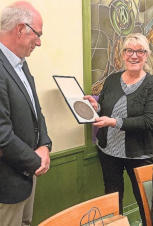 Besondere Auszeic hnung: Für ihren Einsa tz, a uch n 2022, erhält Mar ie- Louise Baabe von Stephan inter eine der selt enen, orginalen Zelter - Plak ett en